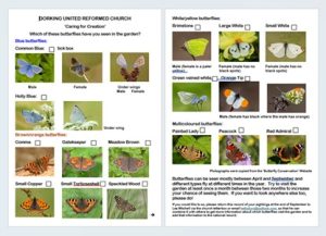 Les Mitchell prepared a fantastic Butterfly Survey for people to take from The Meeting Place and complete, and our Charity Coffee Mornings during the school holidays raised lots of money for creation caring charities including the Ikumbya School, MNDA, Dorking Hospital, Age UK, Campaign Against Living Miserably, and Christian Aid